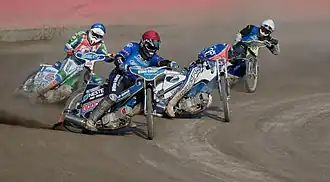 Occasionally races can consist of up to six riders but this is rare as most tracks are too narrow to accommodate the extra riders safely.
