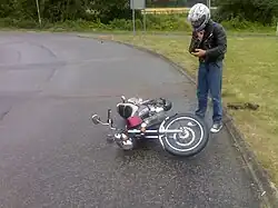 Once the collision has occurred, or the rider has lost control through some other mishap, several common types of injury occur when the bike falls:[55]