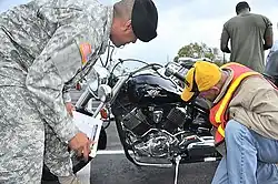 The US armed forces have responded to an increase in off-duty motorcycling accidents and deaths by strengthening existing requirements that service members take a motorcycle safety course and wear helmets, long sleeve shirts, pants, over the ankle shoes, and gloves even if not required locally if they wish to ride, as well as by offering rider training tailored to military motorcyclists.[20][21] In response to the popularity of sport bikes among younger military riders, and the disproportionate representation of sports bikes in accident deaths, courses focusing on sport bike riding have been created at military installations around the world.[22] These courses have been designed in cooperation with the MSF, and a conference on motorcycle safety with the MSF and high level military leadership was held at The Pentagon.[23] The Marine Corps devoted a half day in conference with the top brass and the MSF in recognition of the seriousness of the problem.[24] The military has also adopted new technology such as the Honda Smart Trainer, in Qatar and elsewhere.[25][26]
