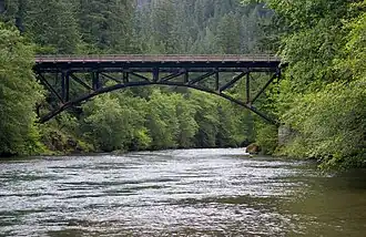 Constructed from 1935 to 1936 by the Civilian Conservation Corps, the bridge is the only surviving example of three such structures built during the Great Depression in the Pacific Northwest.[1][2]