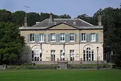 The building was thereafter the seat of the locally important Tillstone family for more than a century, and was the centrepiece of an estate extending to 1,000 acres (400 ha).[1] A wide verandah was added to the house at ground-floor level by 1810,[5] and the hall house was converted into stables.[2] A regular visitor around this time was the Prince Regent (later King George IV), a friend of the family. He had his own bedroom above the drawing room, and a dovecote near the house was adapted into a summer house, in which the prince would sit and practise playing a silver flute he had received from Tillstone.[4] The dovecote was accordingly known as Prince's Tower, but was vandalised beyond repair in 1942.[2] Three "huge mahogany doors" in the house were given by the prince in return; they may have come from the demolished Grove House at Old Steine, where the prince stayed when he first visited Brighton in 1783.[6] More work was carried out on the building in 1906[2] or 1913,[7] when a further two bays were added to the south side of the seven-bay façade.[2]