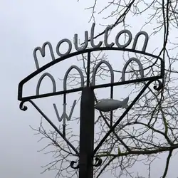 Moulton also has a fine church, St. Peter's, with an early 14th-century tower topped by a gilded weather vane in the shape of a large pike by blacksmith Charles Poulter.[4] Restored in 1851, it is a grade I listed building.[5]