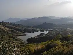 Mount Abu (ⓘ), known as Arbudgiri in Jain tradition, is a hill station in the Aravalli Range in the Sirohi district of the state of Rajasthan in western India. Here, the mountain forms a rocky plateau 22 km long by 9 km wide. It is referred to as 'an oasis in the desert' as its heights are home to rivers, lakes, waterfalls and evergreen forests. It is also home to numerous Jain and Hindu temples.