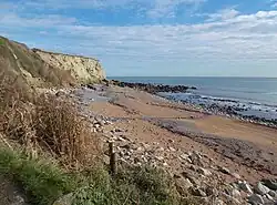 The cliffs backing the bay are formed from landslide debris, derived from the Upper Greensand Formation.