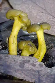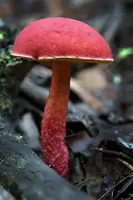 Given the great diversity of plants, specialist habitats and micro-climates in the park, a great diversity of fungi, including lichens, is also expected to occur there. Several hundred fungal species have already been recorded by field naturalists and interested individuals and a list can be found in the Atlas of Living Australia. Leotia lubrica commonly known as the jelly baby grows in leaf litter, moss and soils in the wetter parts of the park. The yellow gelatinous fruitbodies typically grows in clumps. The rhubarb bolete, Boletellus obscurecoccineus is a distinctive species that grows in soils in association with Eucalyptus species. The Australian citizen-science organisation, Fungimap is documenting and mapping the distribution of fungi including those that occur in national parks.