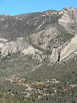 In 1996, plans were announced for the Mount Charleston Golf Resort to be built in the area, as part of a project known as Alpine Village.[46][47] The golf course opened in July 1997, next to the Mount Charleston Hotel. Later that year, the golf course was put up for sale. A hotel had been planned to accompany the course, but it was never built.[48] Mount Charleston residents opposed plans for a shopping center that would also accompany the project.[49][50] The shopping center was eventually rejected by the Clark County Commission.[51][52]