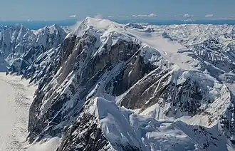 Mount Dickey is a peak on the west side of the Ruth Gorge in the Central Alaska Range of mountains, 12 miles (19 km) southeast of Denali and 4 miles (6 km) southwest of The Moose's Tooth. Despite its relatively low elevation, it is notable for its east face, which has around a vertical mile (1600 m) of sheer granite—it achieves this vertical gain in less than half a mile (800m) horizontal distance. This is one of the tallest rock walls in the world, and the face has seen many world-class climbs.