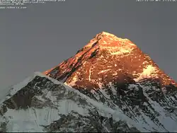 It is a webcam located on Kala Patthar, a mountain in Nepal located in front of Everest, in the Himalayas Himalaya, at an elevation of 5,675 metres (18,619 ft). The webcam capture video footage of the summit of Mount Everest and is the highest webcam in the world.[1] It was installed for the first time by Italian scientists as part of the EvK2CNR / NAST Piramide Observatory Laboratory project,[2] which had and aims to collect scientific information and data on climate change, in particular as regards the physics and chemistry of atmosphere, the study of the evolution of glaciers, water and related phenomena, human health, vegetation and fauna in the Everest region, research related to seismology, geology and geophysics. Projects related to territorial development and capacity building are also active.