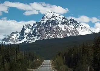 ![]() Mount Fitzwilliam from eastbound Highway 16, the Yellowhead Highway | |