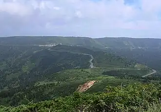 The Hachimantai area is accessible from the city centers of Kazuno, Hachimantai, Semboku and Morioka. The Aspite Line is a 27-km mountain sightseeing road that runs through the area noted for its autumn scenery and high walls of snow in spring.[7]
