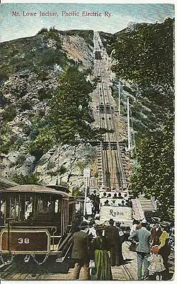 The Mount Lowe Railway was the third in a series of scenic mountain railroads in the United States created as a tourist attraction on Echo Mountain and Mount Lowe, north of Los Angeles, California. The railway, originally incorporated by Thaddeus S. C. Lowe as the Pasadena and Mt. Wilson Railroad Co.,[1] existed from 1893 until its official abandonment in 1938, and was the only scenic mountain, electric traction (overhead electric trolley) railroad besides the Sunset Mountain Railway in Asheville, North Carolina built in the United States. Lowe's partner and engineer was David J. Macpherson, a civil engineer graduate of Cornell University. The Mount Lowe Railway was a fulfillment of 19th century Pasadenans' desire to have a scenic mountain railroad to the crest of the San Gabriel Mountains.
