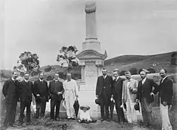 The most striking memorial in the cemetery is probably the Linda Memorial. On 5 November 1908, an accident occurred in the Linda section of the mine in which seven men where killed. Widespread concern and sympathy were evoked and a large public funeral was held. Five more miners were killed on 4 November of that year and a monument was erected for all who had died as the result of accidents in the Mount Morgan Mine; a total of 26 miners between 3 December 1894 and 28 July 1909. The memorial was constructed in 1909 by Busby and Hurlow of Toowong, Brisbane and unveiled by the Mayor of Mount Morgan, John Morrison, on 7 November 1909. It is a fitting memorial in a mining town and a poignant reminder of the danger inherent in mining operations.[1]