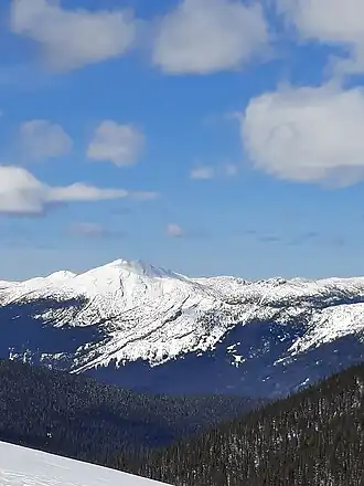 There is a 8.2 kilometre hiking trail to the summit from Highway 97.