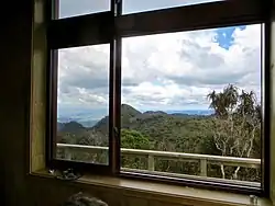 There are numerous tracks to the summit.[17] All the tracks are well signposted, with bright orange plastic waymarks[18] and near the summit have recently been laid with boardwalks (see photo below), some of them as part of Te Araroa long distance trail.[19] A lookout platform was built on Pirongia summit after 1999.[7] From it, it is possible to spot Mount Taranaki summit and Mount Ruapehu summit on a clear day (see sunset photo). On the west side there are Aotea, Kawhia and Raglan harbours.[18]