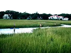 Mount Pleasant is separated from Charleston by the Cooper River. For many years, the town was populated largely on a seasonal basis by Charleston residents wealthy enough to afford summer homes across the river from the Charleston peninsula, where they would go believing they could escape the regular summer "fevers". The population of Mount Pleasant was centered in "Old Village".[10]