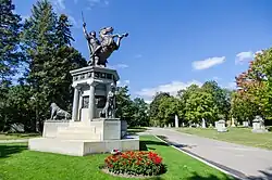 Mount Pleasant Cemetery is a cemetery located in Toronto, Ontario, Canada, and is part of the Mount Pleasant Group of Cemeteries. It was opened in November 1876 and is located north of Moore Park, a neighbourhood of Toronto. The cemetery has kilometres of drives and walking paths interspersed with fountains, statues and botanical gardens, as well as rare and distinct trees. It was originally laid out by German-born landscape architect Henry Adolph Engelhardt, inspired by the European and American garden cemeteries of the 19th century, and with influences from Mount Auburn Cemetery in Boston.[1]