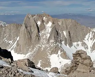 ![]() The south face of Mount Russell viewed from atop Mount Whitney | |
