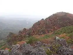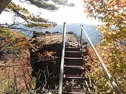 Mount Ryōzen (霊山, Ryōzen) is a mountain on the border of Sōma and the former town of Ryōzen, in Date, Fukushima. It is 825 metres (2,707 ft) in height.[2] Along the hiking trail are the sites of what were Ryōzen Temple and Ryōzen Castle.[3] The mountain is listed as one of the 100 Landscapes of Japan in a contest sponsored by the Tokyo Nichi Nichi Shimbun and Osaka Mainichi Shimbun.[4] It is also a national Place of Scenic Beauty as determined by the Agency for Cultural Affairs in Japan and is noted for its autumn foliage and a National Historic Site of Japan.