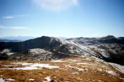 The Mount Sniktau trail, which allows hikers to reach the summit of the mountain by foot, is accessible immediately off of a parking lot at Loveland Pass on U.S. Highway 6.[6][8] The trailhead begins above the treeline at about 12,000 feet (3,660 m) and rises to 13,234 feet (4,034 m) at the peak, but reaching the summit does not necessarily require the use of extra mountain climbing equipment such as ropes.[4] Visitors can also reach Grizzly Peak, a nearby mountain (not to be confused with the taller Grizzly Peak in Chaffee County), from the same point along Loveland Pass.[8]