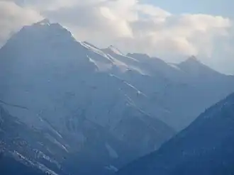 Mount Stanley Baldwin is a mountain located in the Premier Range of the Cariboo Mountains in the east-central interior of British Columbia, Canada. The mountain is located at the head of the Gilmour Glacier. It was originally named Mount Challenger by Allen Carpé during his 1924 ascent of the mountain.[2]
