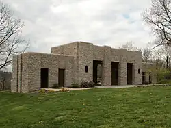 Mount Storm Park's stone shelter or pavilion, built in 1935, overlooks the Mill Creek valley. The building was designed by Samuel Hannaford & Sons and is characterized by the lack of ornament typical of "Depression Modern".[2] The shelter building was built by Cincinnati contractor Holt & Reichard, Inc.