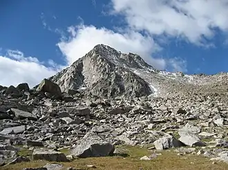 Mount Washakie (or Washakie Peak) (12,524 feet (3,817 m)) is located in the Wind River Range in the U.S. state of Wyoming.[3] The mountain is on the Continental Divide in the Bridger Wilderness of Bridger-Teton National Forest and Popo Agie Wilderness of Shoshone National Forest. Washakie Glacier lies .50 mi (0.80 km) to the southeast of the peak.