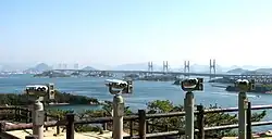 Mount Washu or Washū-zan (Japanese: 鷲羽山) is a 133 meter hill in Shimotsui (下津井), Kurashiki, Japan, but famous traditionally for viewing the Seto Inland Sea dotted with various small islands, and now for commanding the majestic view of the Great Seto Bridge, one of the three bridges connecting Shikoku Island with the main Honshu Island.