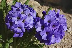The mountain is partially dome-shaped, with its famously jagged ridges extending to the sides.[13] Mount Whitney is above the tree line and has an alpine climate and ecology.[14] Very few plants grow near the summit: one example is the sky pilot, a cushion plant that grows low to the ground.[15] The only animals are transient, such as the butterfly Parnassius phoebus and the gray-crowned rosy finch.[15]