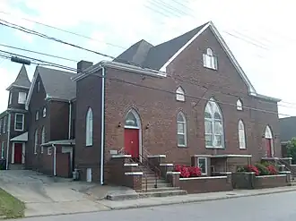 Mount Zion Baptist Church is a historic African-American Baptist church located at 413 N. Church Street in Salisbury, Rowan County, North Carolina. The sanctuary was built in 1907, and is a red brick Gothic Revival-style building. It features stained glass lancet windows and small triangular shaped windows and former towers capped by octagonal conical roofs. A brick-veneered educational/manse wing added between 1913 and 1920.[2]