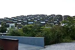 Mountain Dwellings (Danish: Bjerget) is a building in the Ørestad district of Copenhagen, Denmark, consisting of apartments above a multi-story car park. The building was designed by the Danish architectural practice PLOT (BIG+JDSA). The apartments scale the diagonally sloping roof of the parking garage, from street level to 11th floor, creating an artificial, south facing 'mountainside'. Each apartment has a "backyard" on the roof of the property in front and below it. The resulting courtyard penthouses are an attempt to balance "the splendours of the suburban backyard with the intensity of an urban lifestyle".[1]