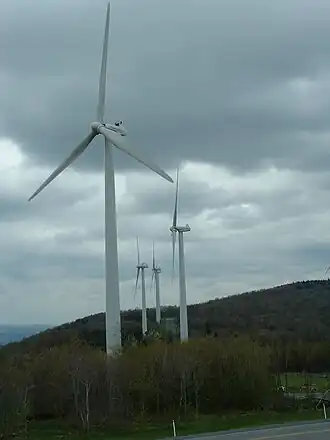 Mountaineer Wind Energy Center is a wind farm on Backbone Mountain in Preston and Tucker counties in the U.S. state of West Virginia.[1] When it came online in December 2002, Mountaineer was the first wind farm in West Virginia, and the largest east of the Mississippi River.[2] Mountaineer Wind Energy Center is owned and operated by Florida Power & Light.[1][2][3] Exelon Generation purchases the power produced by Mountaineer and markets it across the Mid-Atlantic region through its partnership with Community Energy, Inc., a leading wind energy marketer in the United States.[1][3]