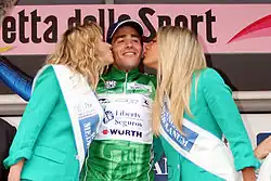 ![]() Koen Bouwman wearing the blue jersey during the 2022 Giro d'Italia | |