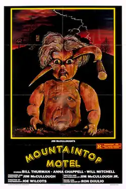 Mountaintop Motel Massacre[i] is a 1983[1] American psychological slasher film written and directed by Jim McCullough Sr. and starring Anna Chappell, Bill Thurman, and Amy Hill.[4] The plot concerns a psychotic elderly woman who, after being freed from incarceration, returns to the motel she ran and begins murdering the guests.