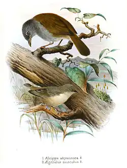 The mouse-coloured penduline tit or mouse-colored penduline tit (Anthoscopus musculus) is a species of bird in the family Remizidae. At 8 cm (3.1 in) in length, it is one of the two shortest birds native to Africa, alongside the tit hylia.[2]