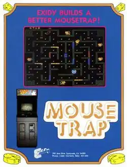 Mouse Trap is a maze video game developed by Exidy and released in arcades in 1981. It is similar to Pac-Man, with the main character replaced by a mouse, the dots with cheese, the ghosts with cats, and the energizers with bones. After collecting a bone, pressing a button briefly turns the mouse into a dog. Color-coded doors in the maze can be toggled by pressing a button of the corresponding color. A hawk periodically flies across the maze, unrestricted by walls.