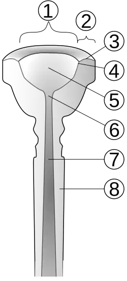 | No. | Mouthpiece element | Effect on playing | Typical size/nature (Trumpet) |