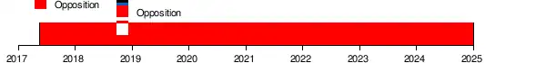 | Year | Leader | Popular vote | % of popular vote | # | # of seats | Seat change | Coalition | Status |