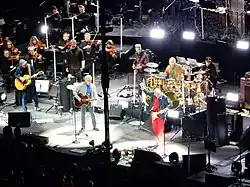 The Moving On! Tour consisted of 29 performances in North America and the United Kingdom.[1] The tour was announced on January 11, 2019, and included local symphonic orchestras accompanying the Who at each performance, with orchestral arrangements by David Campbell.[2] Pete Townshend and Roger Daltrey are the only remaining members of the group, along with longtime touring members Simon Townshend and Zak Starkey, and an ensemble of others. The tour was cut short in March 2020 by the COVID-19 pandemic. Ten shows in Ireland and the United Kingdom were eventually rescheduled for March 2021, but those were canceled a month before the fact in February 2021 and the band has announced no further plans.