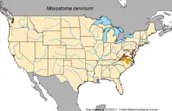 - ^ NatureServe (2013). "Moxostoma cervinum". The IUCN Red List of Threatened Species. 2013. IUCN: e.T202162A18235312. doi:10.2305/IUCN.UK.2013-1.RLTS.T202162A18235312.en. Retrieved 11 January 2018.