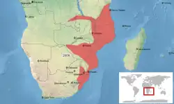 The Mozambique rain frog has a widespread distribution in southern and central Africa. Its range extends from the Democratic Republic of the Congo and Tanzania in the north to the Republic of South Africa in the south. Its natural habitats are savannah, bushy country and open woodland, especially the moister parts of these. It is found in the lowlands and on the lower slopes in mountainous areas up to a height of 1,800 metres (5,900 ft) above sea level. It is an adaptable species and seems to be able to cope with habitat degradation.[5]