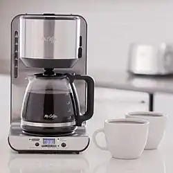 Mr. Coffee is a brand of automatic drip-brew kitchen coffee machines and other kitchen appliances owned by Newell Brands. Founded in the early 1970s to make a pioneering coffeemaker, Mr. Coffee established itself as the industry's top-selling brand through a promotional relationship with former New York Yankee great Joe DiMaggio, a Major League Baseball Hall of Famer held in high regard by that era's consumers.[2] It subsequently expanded into other kitchen products, such as a related tea maker, juicer, and food dehydrator, and integrated wireless technology into a "smart" version of its coffeemaker.[3] Mr. Coffee is a registered trademark.[3]