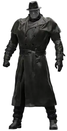 In the original Resident Evil 2 (1998), Mr. X wore only a trench coat, while in the remake, he also wears a fedora hat.[4] He was dropped into Raccoon City by Umbrella Corporation along with five other T-103 Tyrants during the outbreak of the T-virus, a highly contagious zombifying virus created as a bioweapon. While the others were commanded to engage in a cover-up of the situation, T-00 was given two unique missions: eliminate any survivors in the Raccoon City Police Station, and track down a sample of the G-virus—a mutagenic pathogen enabling immense growth and power—by any means necessary. Leon and Claire soon discover he is immune to harm from any normal weapon.[8] While being temporarily incapacitated by the impact of a moving van and explosives detonated by series antivillain Ada Wong, he later recovers before being seemingly killed by William Birkin, a mutated scientist who formerly worked for Umbrella. In Claire's scenario, he is not seen further, while in Leon's scenario, Mr. X is shown to have regenerated again, pursuing Leon into NEST, a secret Umbrella Corporation research facility. When the self-destruct sequence for NEST is triggered, he mutates into a Super Tyrant and attempts to kill Leon once and for all. Ada gives Leon a rocket launcher, allowing him to permanently kill Mr. X.[5]