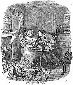 "Mr. Bumble and Mrs. Corney taking tea" – George Cruikshank (1838)