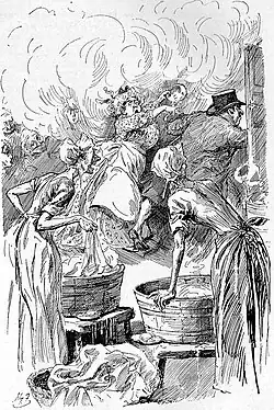 Bumble receives a more public humiliation at the hands of his wife when he attempts to enter the workhouse as the new master, only to be driven out by her before the paupers. When later in the novel Bumble is astonished to discover from Mr Brownlow that in the law a husband is responsible for the actions of his wife he famously declares that: “If the law supposes that – the law is a ass – a idiot. If that's the eye of the law, the law's a bachelor; and the worse I may wish the law is, that his eye may be opened by experience — by experience."