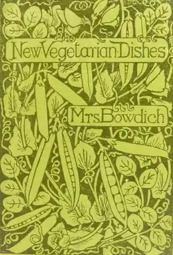 Bowdich published New Vegetarian Dishes in 1892, containing 221 recipes, 200 of which were created and tested by herself.[16] Dishes included "Soups, Salads, Savouries, Stews, Soufflés, and Sauces".[17] Its preface was authored by Ernest Bell and its cover was created by Gleeson White.[16][18]