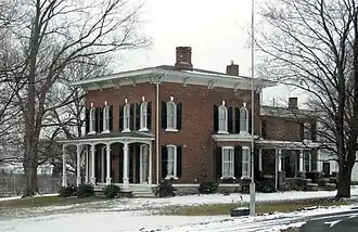 It is credited to architect Archimedes Russell and was built in 1870. It is a two-story, brick Italianate style dwelling. It consists of a main block and rear wing with low hipped roofs. It features a full width, one-story front porch and small side porch with chamfered columns.[2]: 3–4
