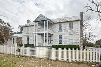 Mrs. Sam Houston House is a historic house on Farm to Market Road 390 in Independence, Texas.[2] Sometimes known as the Root house, this Greek Revival house was built probably around 1855.[3] Margaret Lea Houston, the widow of politician and Texas statesman Sam Houston, bought the house in 1864 from Major Eber Cave, a family friend. She lived in it during her final years until her death in 1867. The property was listed on the National Register of Historic Places in 1970 as the "Mrs. Sam Houston House," notable for its association with her.[4]