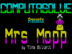 Mrs Mopp is a video game developed by Tina Billett for the 48K ZX Spectrum published by Computasolve in 1984.[1] It was re-released by Atlantis Software as the punctuated Mrs. Mopp. The player takes the role of a housewife trying to keep her kitchen tidy against the best mess-making efforts of her family.