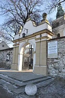 Mstów was first mentioned as Mstowo in 1193, when it belonged to the congregation of Canons Regular of the Lateran from Wrocław. Sometime in the early 13th century, a large monastery was built here. It burned in a great fire of 1566, then the complex was rebuilt and destroyed several times. More destruction came during World War I, when several German-Russian skirmishes took place here in early stages of the conflict. During those fights, the towers and defensive walls of the ancient church were destroyed, as well as the roof of the nave. The complex was gradually rebuilt in the 1920s and 1930s.