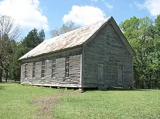 The first church building was a log structure built on land donated by James Monroe Gray.[2][4] It stood across the road from the current building and was also used as a school. It was torn down sometime between 1890 and 1900.[2]